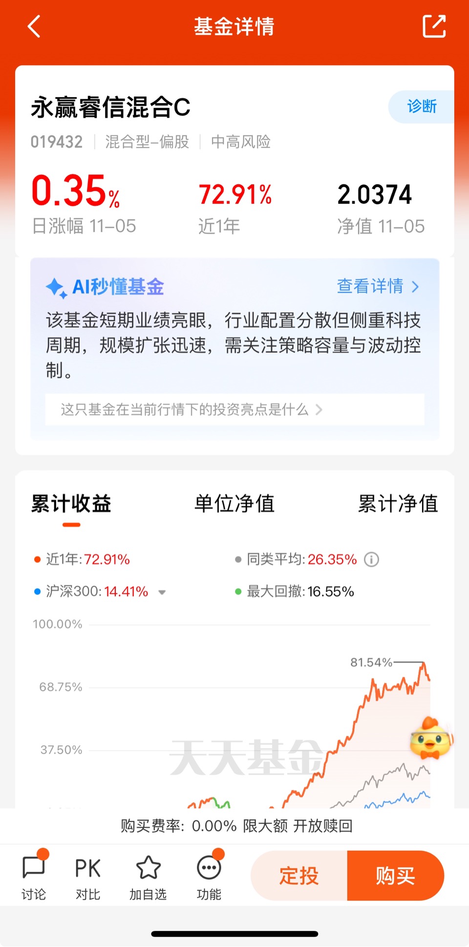 $永赢睿信混合C$ 昨天收0.35%,近3个月收21.12%,近6个月收62.16%,近一年收72.91,各个阶段表现优秀!它主要聚焦通信、电子、有色金属多板块领域。这里聚焦科技与周期行业,聚焦于具备长期价值创造能力的优质企业,侧重于捕捉市场情绪,选取基本面驱动的个股作为底仓,同时根据不同阶段市场情况灵活调整!