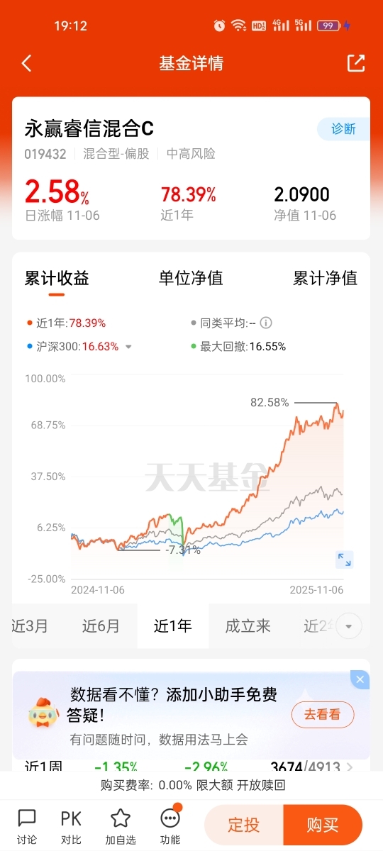 永赢睿信混合C019432今晚净值又涨2.58%,近三个月涨幅21.67%,近一