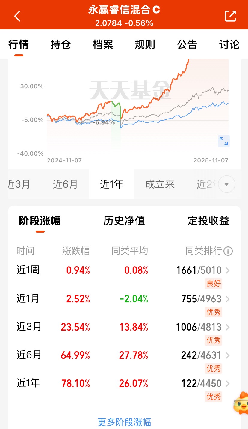 $永赢睿信混合C$年内净值增长超过78个点,近三个月收益23.54%,近六个月收