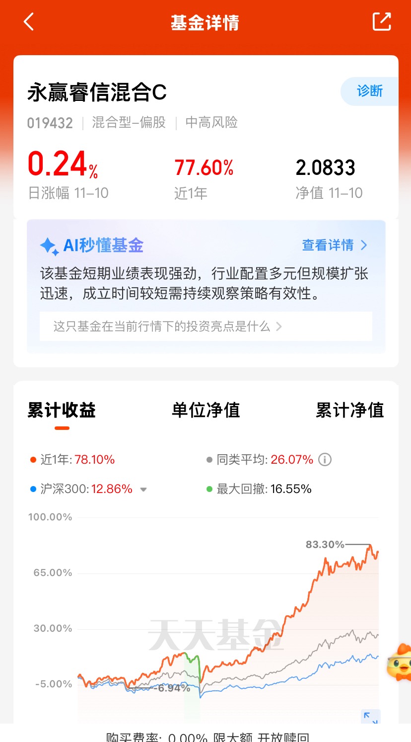 $永赢睿信混合C$年内净值增长超过77个点,近三个月收益23.13%,近六个月收