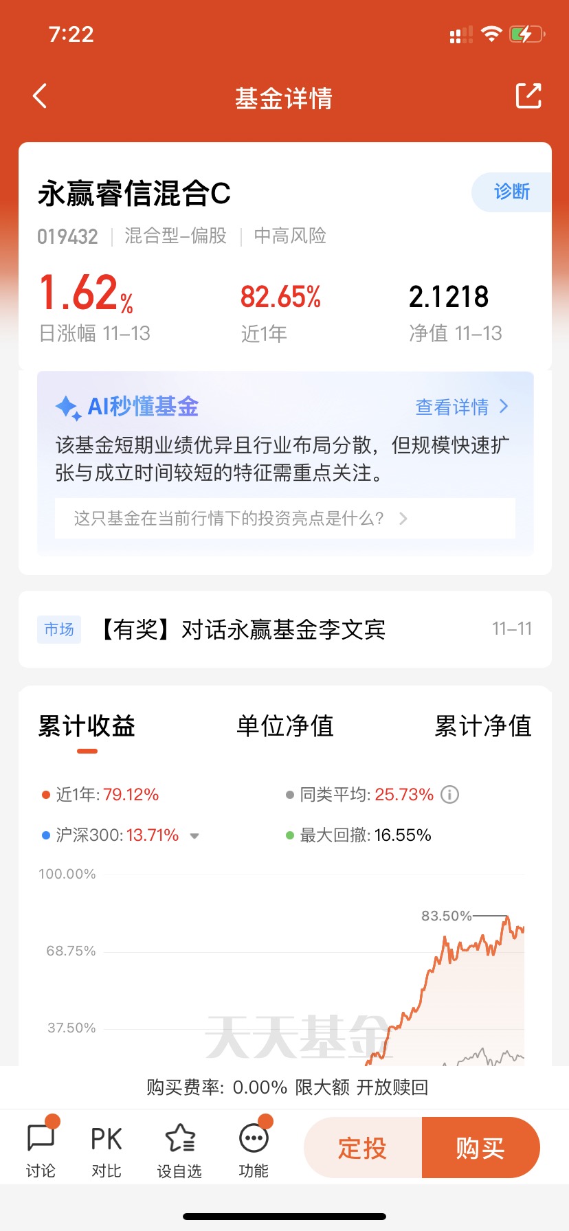 $永赢睿信混合C$ 今天涨了1.62%,本周四天三涨,状态不错呀,还挺抗波动的一个了!永赢睿信主要布局通信CPO、医药、汽车零部件等,都是高景气度赛道,可以说持仓均衡,而且从这里的净值表现可以看出来,这里波动小,回撤低,修复能力比较强,近半年涨超67%,短期业绩爆发力强,确实优秀了!#多重利好催化!新能源走强#