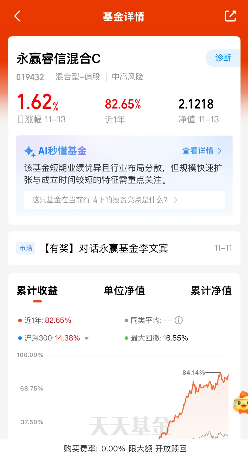 $永赢睿信混合C$今天上涨1.62%,近三个月收益18.29%,近六个月收益67