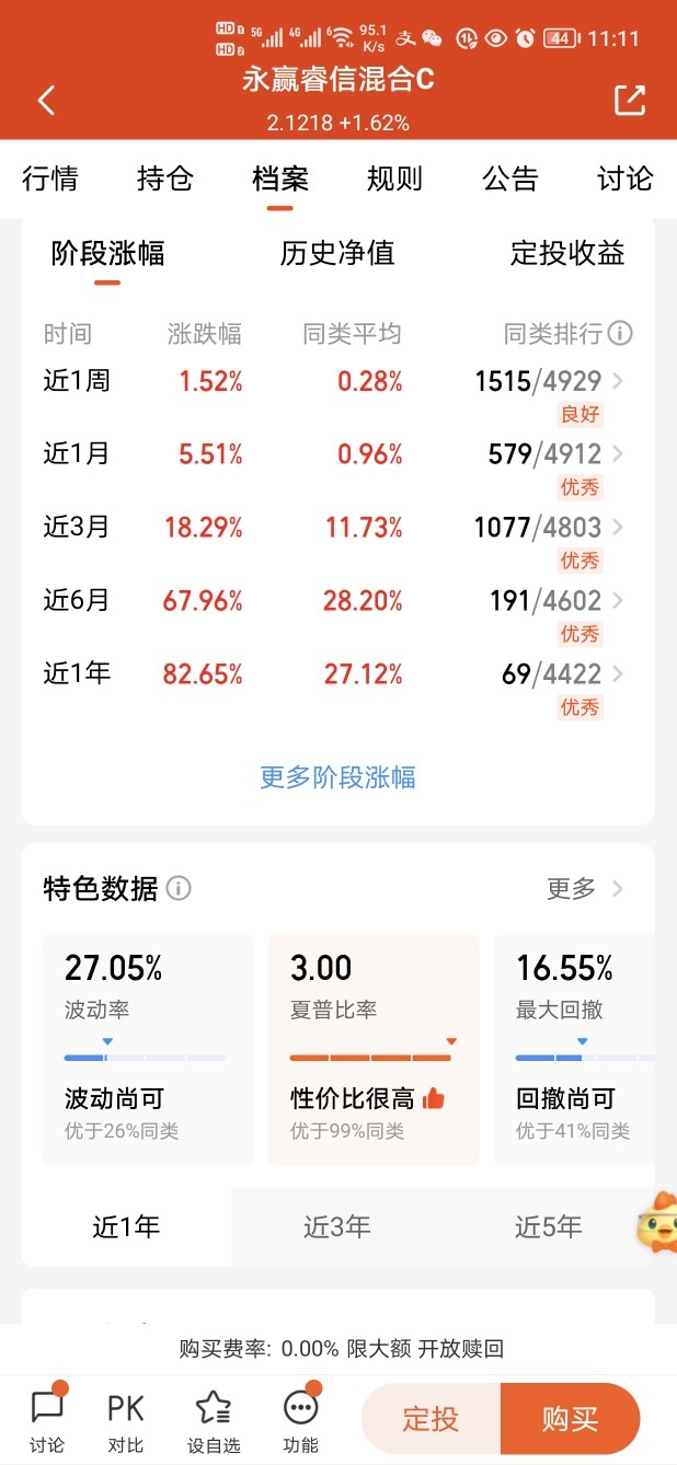 四天三涨,最近的行情还是不错。$永赢睿信混合C$ 主要布局通信CPO、医药、汽车零部件等,都是高景气度赛道,可以说持仓均衡,而且从这里的净值表现可以看出来,这里波动小,回撤低,修复能力比较强,最近一个月到最近一年都是同类优秀,近半年涨超67%,业绩爆发力强,确实棒了,我也跟上#多重利好催化!新能源走强#