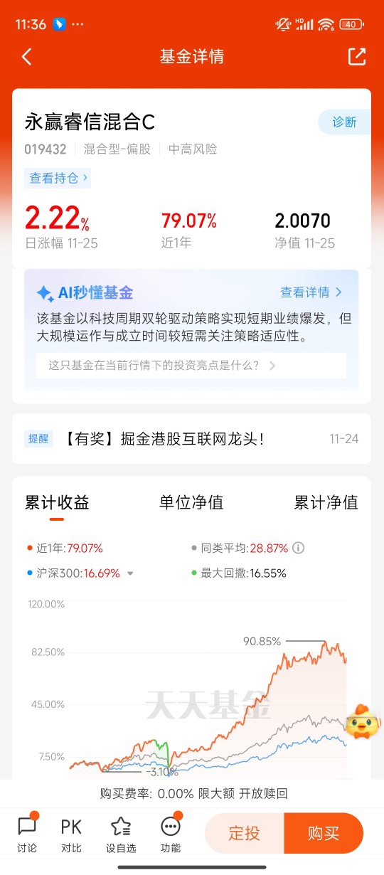 这周行情逐步回暖,趁早进场配置$永赢睿信混合C$昨晚大涨2.22%。五天四涨。近