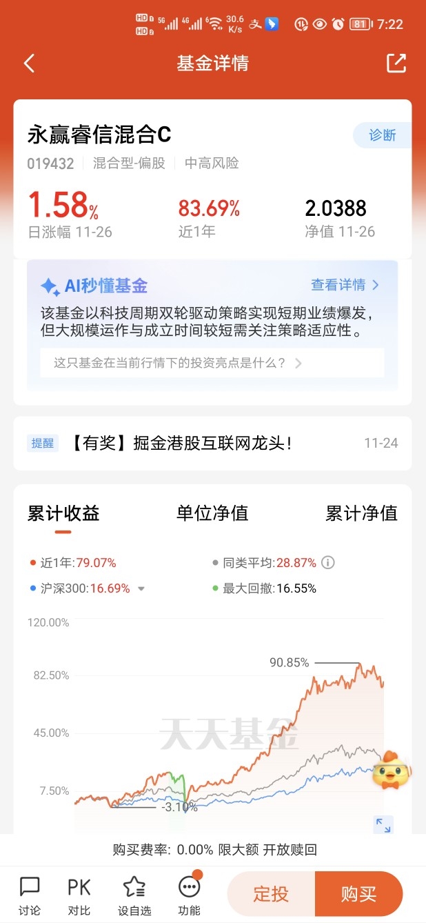 还得是多元配置更靠谱,$永赢睿信混合C$ 今天涨幅1.58%,连红三天了,这支产品行业配置均衡,重仓股配置凸显科技与医药赛道的优势,集中布局光通信、AI算力硬件及创新药领域,有效分散了单一行业风险,抗波动能力不错。聚焦于具备长期价值创造能力的优质企业,侧重于捕捉市场情绪、周期与流动性环境驱动的阶段性机会,投资策略灵活,业绩给力#3800点的A股值得加仓吗?#
