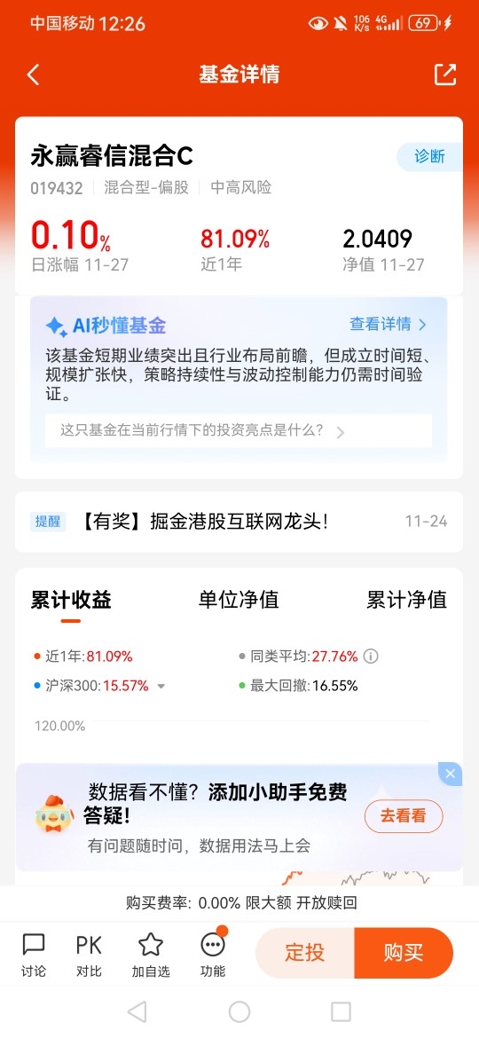 #今年你的投资目标达成了吗?# 当前市场处于结构性行情阶段,无风险收益率下行背景下,权益资产吸引力增强。永赢睿信的成长风格与换手策略,使其在行业轮动中更具灵活性,有望继续捕捉市场机会。永赢睿信C昨日上涨+0.10%,近一年收益81.09%,现在开始布局明年行情也是不错的呀