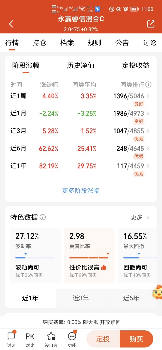 最近这表现真的是越来越棒了,上周五天全红,$永赢睿信混合C$ 专注于AI、创新药、新消费等高景气赛道,能够避免单一的仓带来的过大风险和波动,把握市场多轮行情。最近连续五天上涨,可见这里的短期业绩爆发力强,长期业绩也是优秀亮眼,最近六个月涨超62个点,最近一年涨超82个点,潜力十足啊!这里以稳健为核心思路,从净值表现来看,回撤控制的也是很不错#今年你的投资目标达成了吗?#