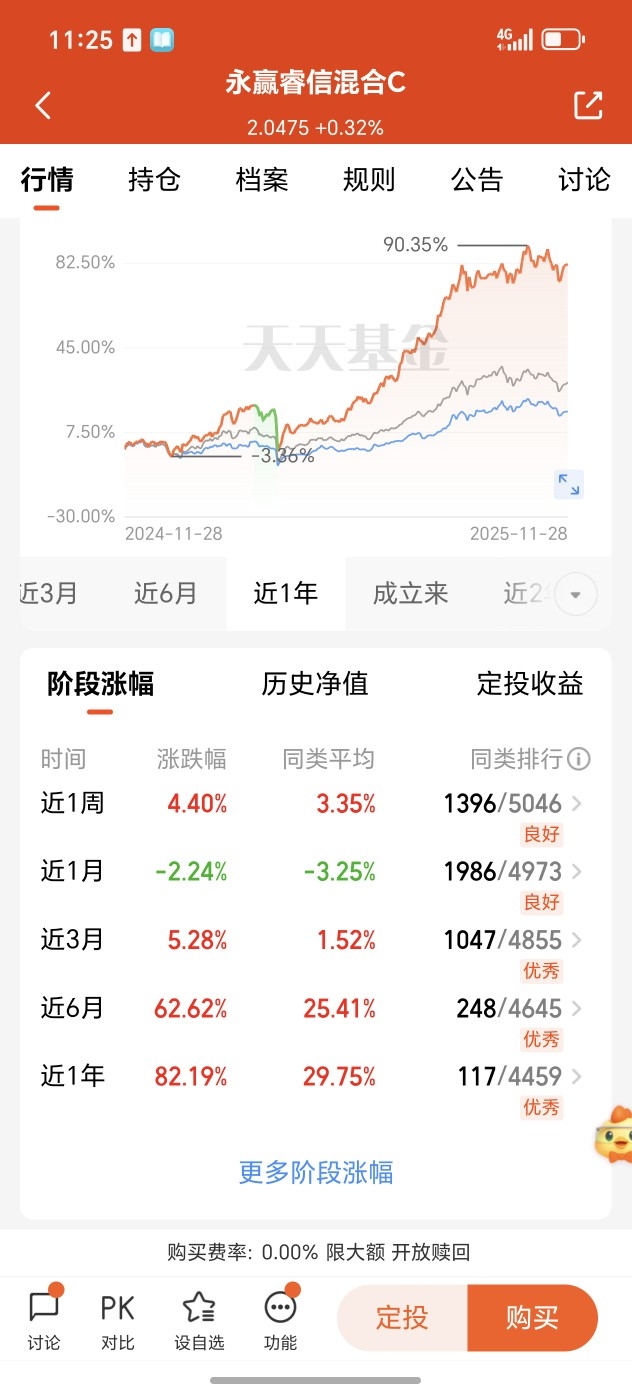$永赢睿信混合C$ 配置均衡,投资策略灵活。近一周涨4.4%,近六个月涨62.62%,近一年82.19%的涨幅,多阶段业绩表现优秀,业绩表现亮眼。永赢首席权益投资官高楠市场嗅觉灵敏,管理水平高,后市继续保持期待,加油冲鸭!#今年你的投资目标达成了吗?#