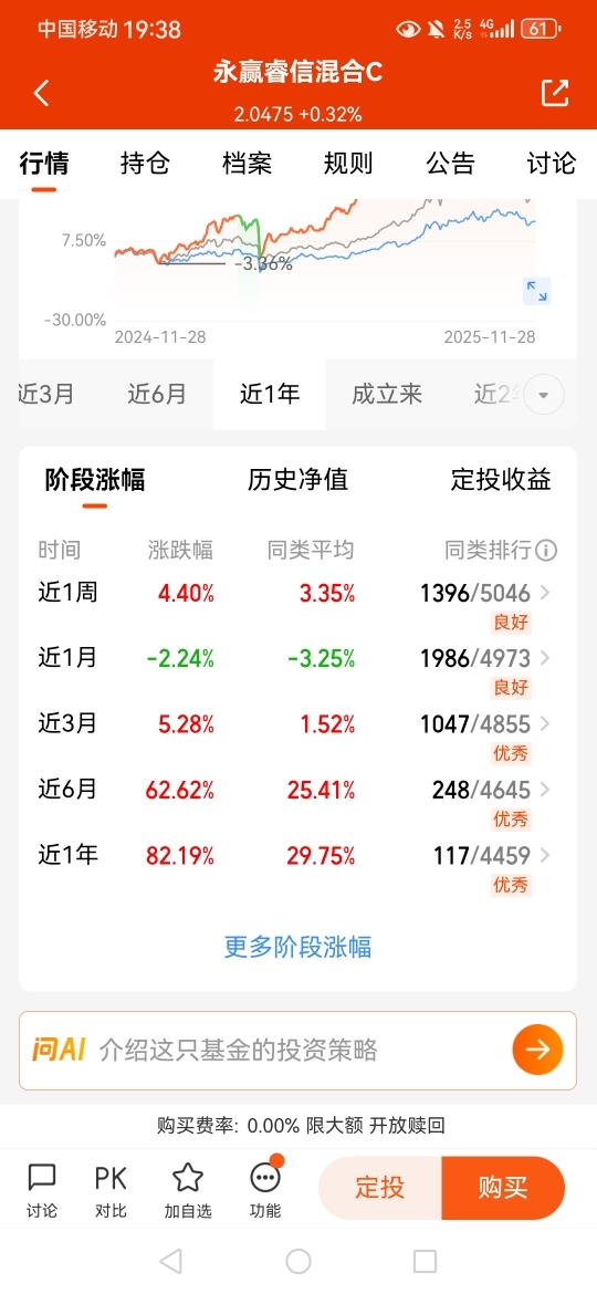 永赢睿信是整体以稳健为核心思路的基,近一周涨幅4.40%,近三个月涨幅5.28%,近半年涨幅62.62%,近一年涨幅达82.19%,各个阶段业绩稳定,基本面预期或反转的板块,值得重点关注,超高弹性,提前布局更有优势,看好后市发展空间。#12月基金投资策略#