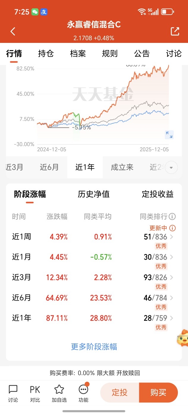 $永赢睿信混合C$ 以多元配置为核心,通过成长+波动率双资产框架覆盖消费、科技等多赛道,今天上涨0.48%,近三个月涨12.34%,近一年87.11%的涨幅,业绩表现优秀,充分体现了基金经理主动管理能力。在结构性行情中持续优化组合,兼顾收益与抗波动,值得蹲守。#心仪的超额收益基#