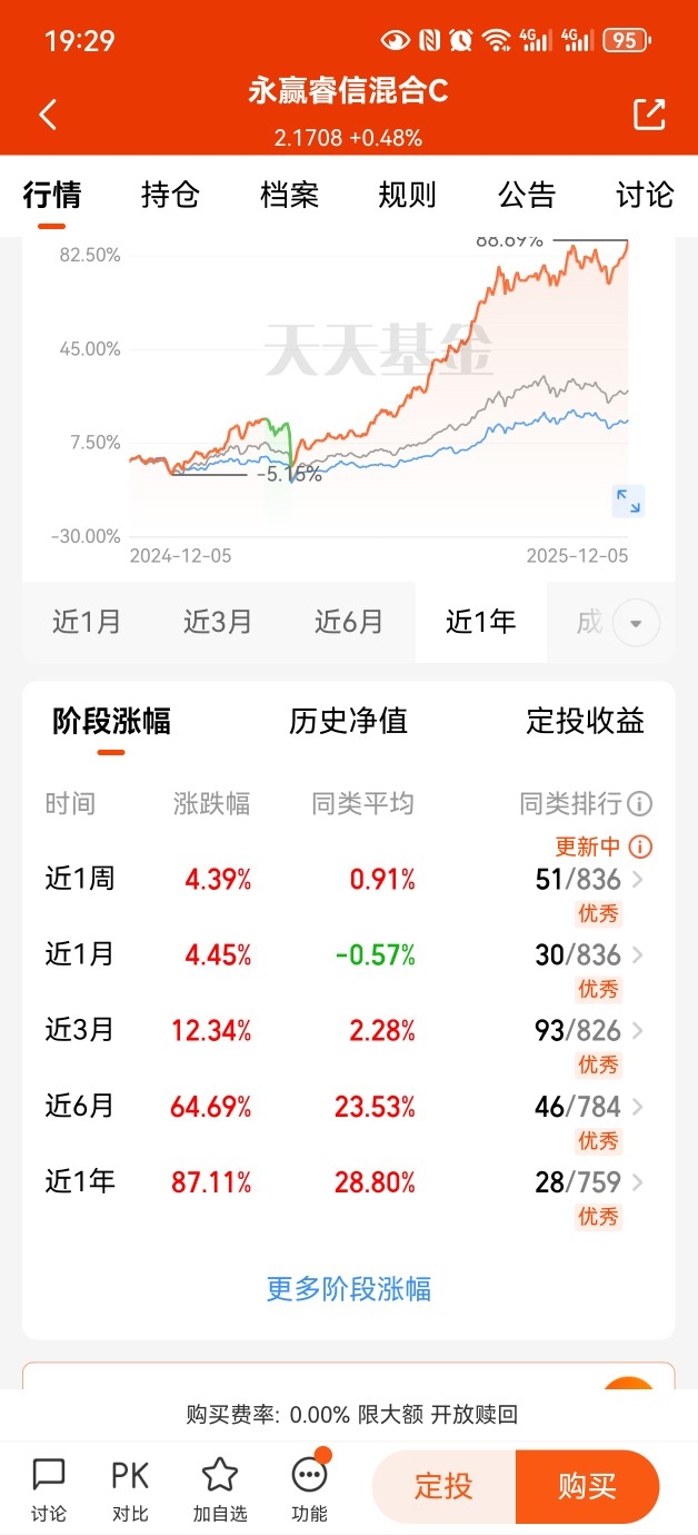 $永赢睿信混合C$今天涨幅+0.48%,已经连续四天上涨,开启强势反弹模式啦!该