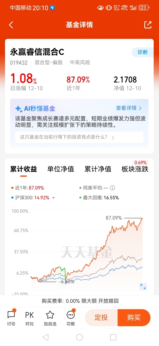 $永赢睿信混合C$业绩表现还是很优秀的,今日上涨+1.08%,近一年涨幅+87.