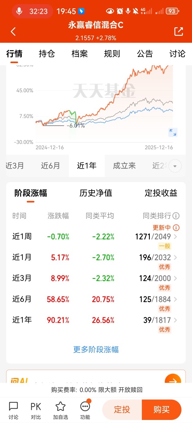 $永赢睿信混合C$开始反弹,今天涨幅+2.78%,近六个月涨幅+58.65%,近