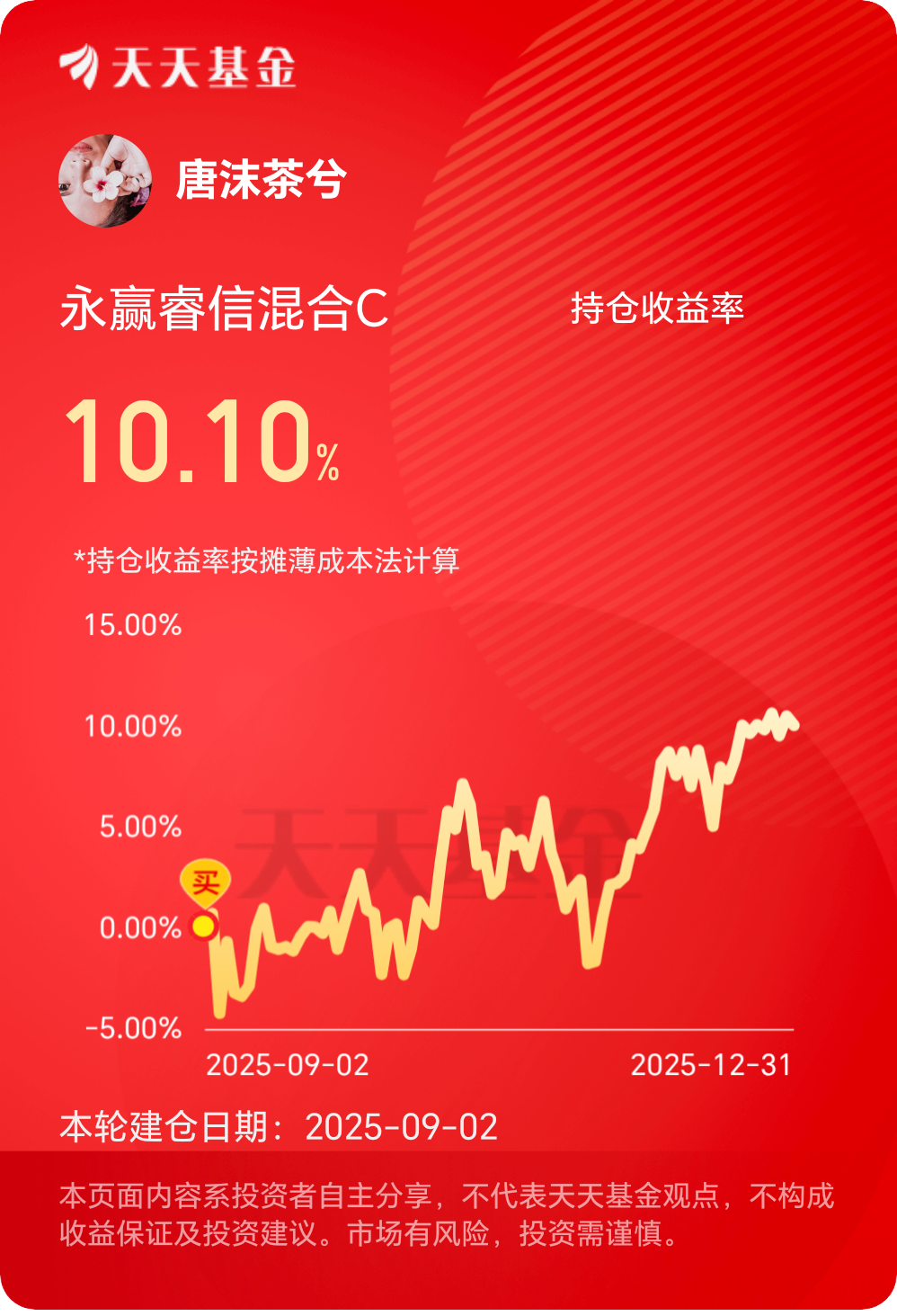 今天反弹得不错,吃肉肯定没问题的。$永赢睿信混合C$