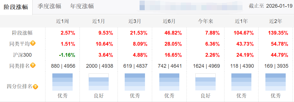 这一切的一切,都源于不俗的业绩:近6月涨46.82%、近1年涨104.67%。