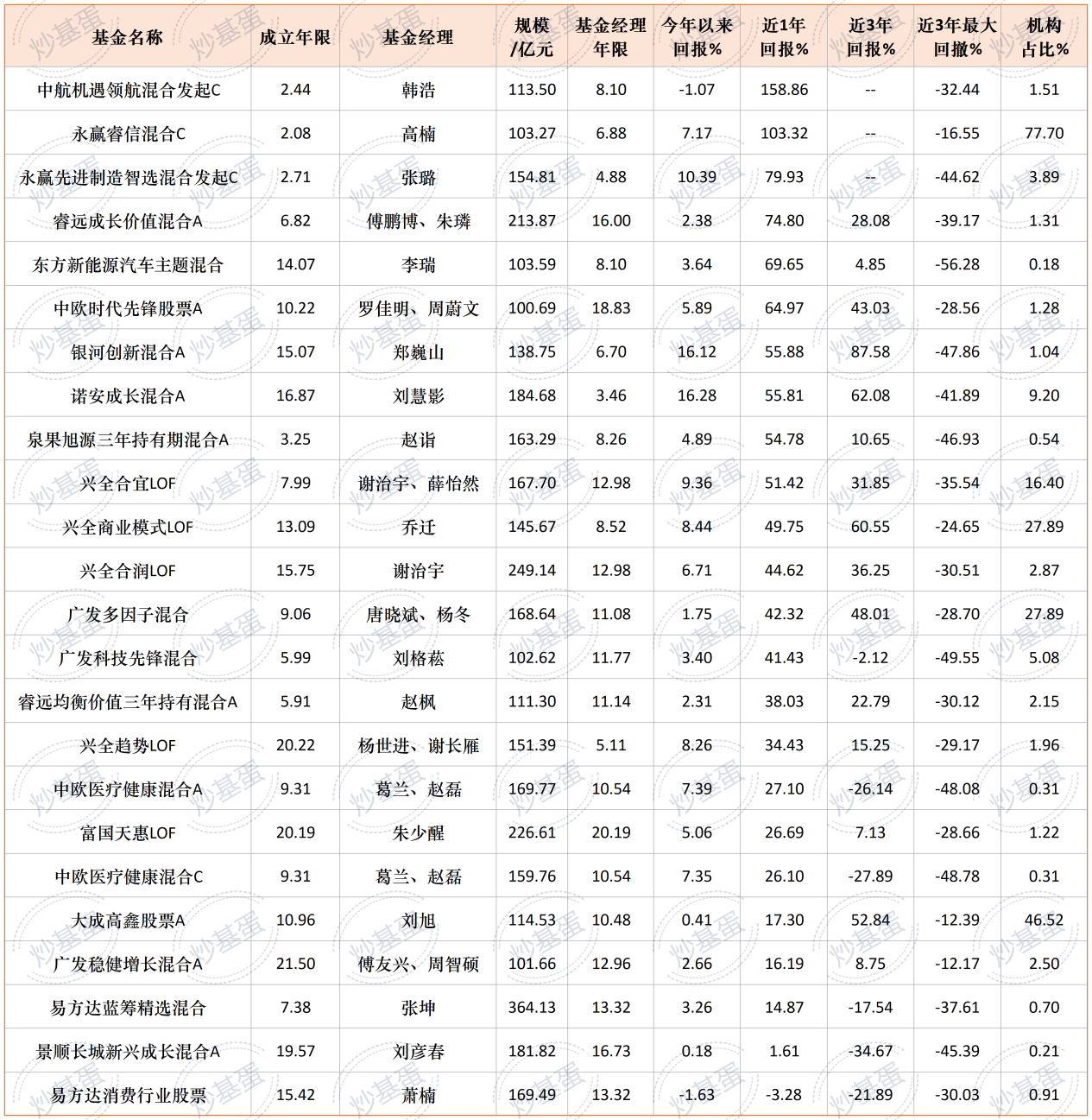 兴全里的谢治宇、乔迁、杨世进都有不错的表现,有多只基金上榜。兴全基金是精品店模式,发行基金数量很克制,导致基金的规模都不小。大规模的管理经验相信也不差,业绩能跑出来相当不错。
