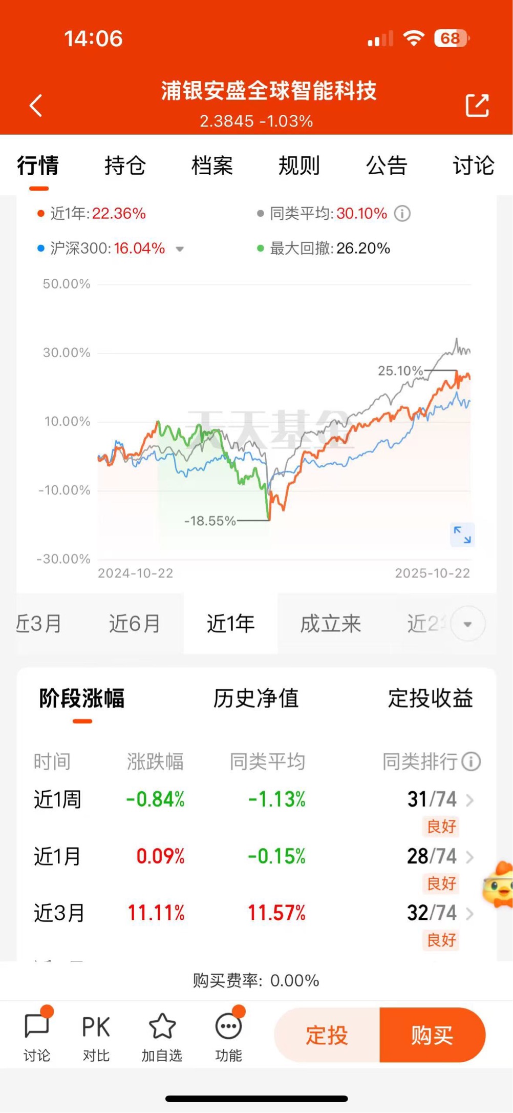 $浦银安盛全球智能科技(QDII)C$ 完全不限购,牛市看仓位,想要补足仓位的来