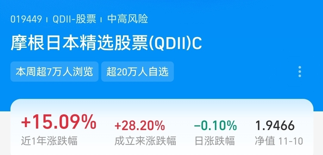 今日A股市场有所调整,A股成长股的长期价值空间值得期待,布局窗口已打开。这个$摩根日本精选股票(QDII)C$ ,近一年涨幅15. 09%,成立以来涨28.20%,波动小、收益稳。趁现在,牢牢把握优质标的的上涨机会。