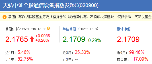 指数开始震荡反弹了,但是基金大多数表现不好,从盘面看,超过4500家个股是回调的,所以虽然创指一度涨超1%,但是大多数板块赚钱效应并不好,我看了一下涨幅榜,强势一点还是CPO板块,今晚美股盘后,英伟达业绩发布,部分资金去博业绩会大超预期,从而带动整个CPO业绩的上行,所以部分资金强先手,今天CPO三大龙头表现的都不错,指数目前看是肉汤,我就继续拿稳$天弘中证全指通信设备指数发起C$ ,从阿里大幅持续投入,我对于AI依旧信心满满,人工智能这一主线也依旧是当下市场最强大的驱动力。