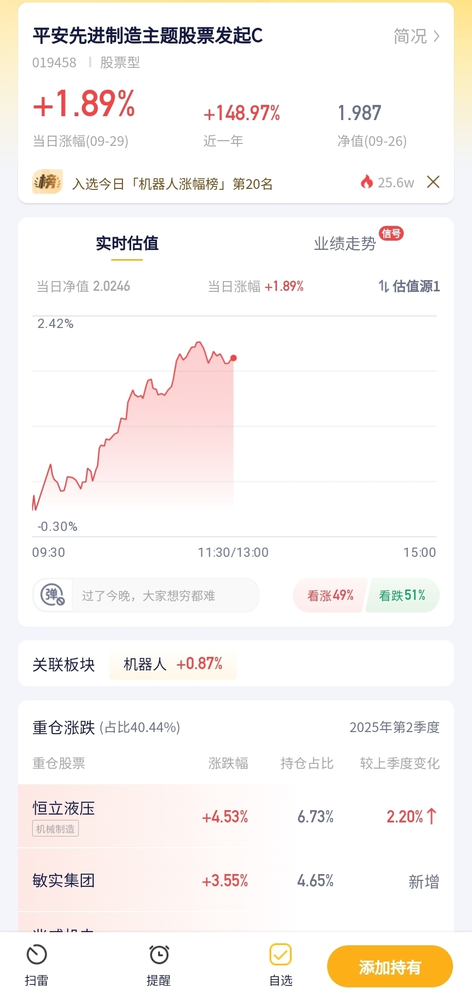 国庆前,A股预计在3800点附近波动,交投不活跃,大家都不想长假持股冒险。机器人板块ETF年内吸金多,资金很看好,短期调整只是暂时的,等量产节点到了就会涨。