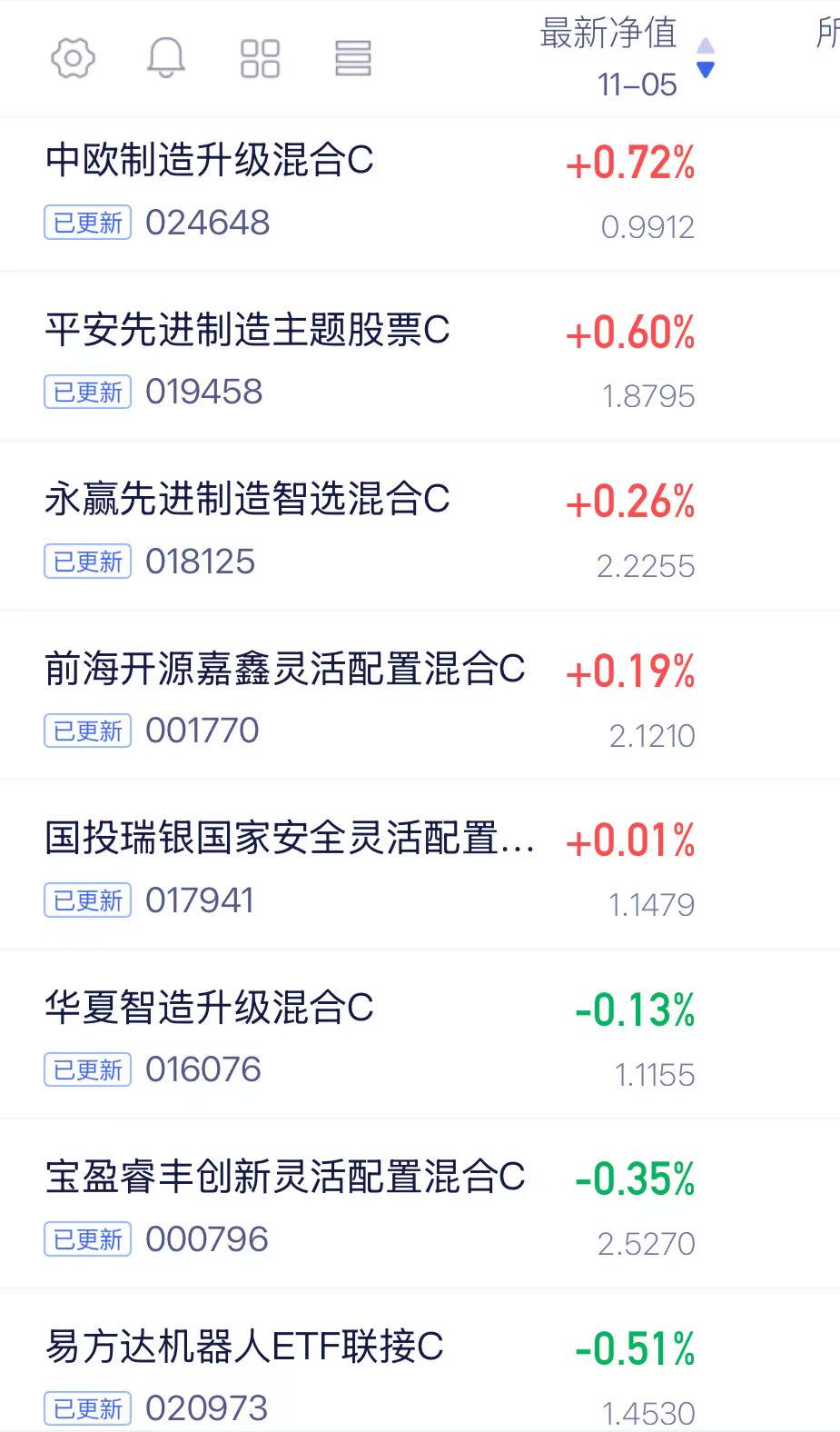 $中欧制造升级混合发起C$ 人形机器人方向,今天收涨0.72%,跑赢市面上同类基,有两把刷子