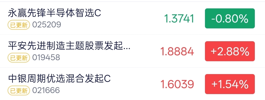 $中银周期优选混合C$今天上涨了1.54%,也很厉害啊
