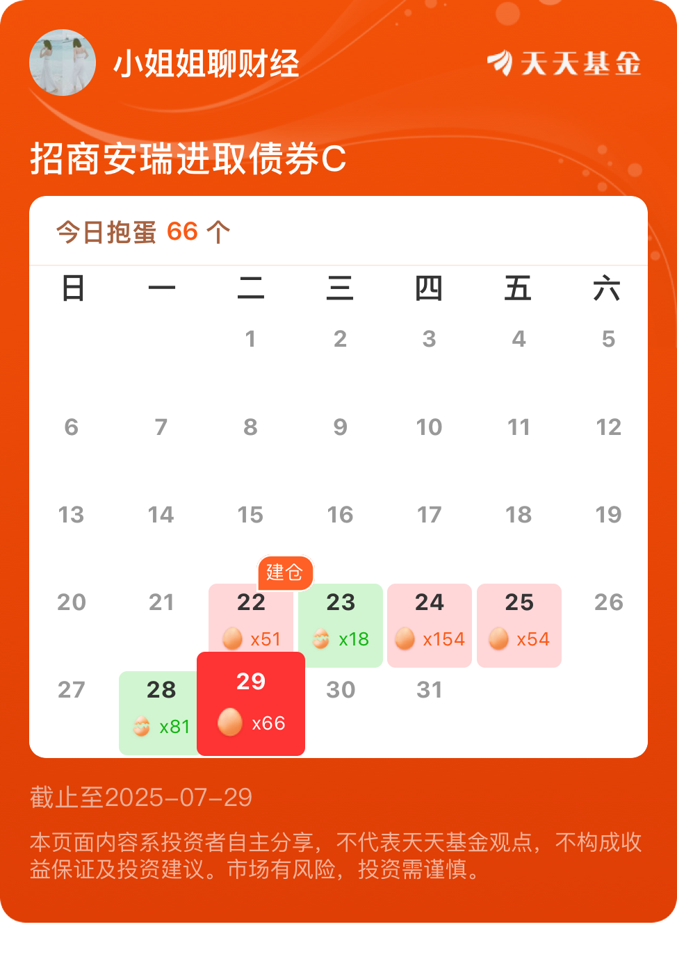 今天抱蛋66个,不错,买入以来收了200多个蛋了