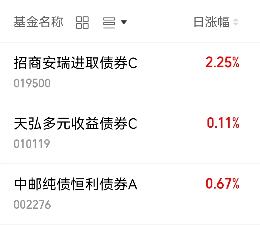 $中邮纯债恒利债券A$上涨0.67%