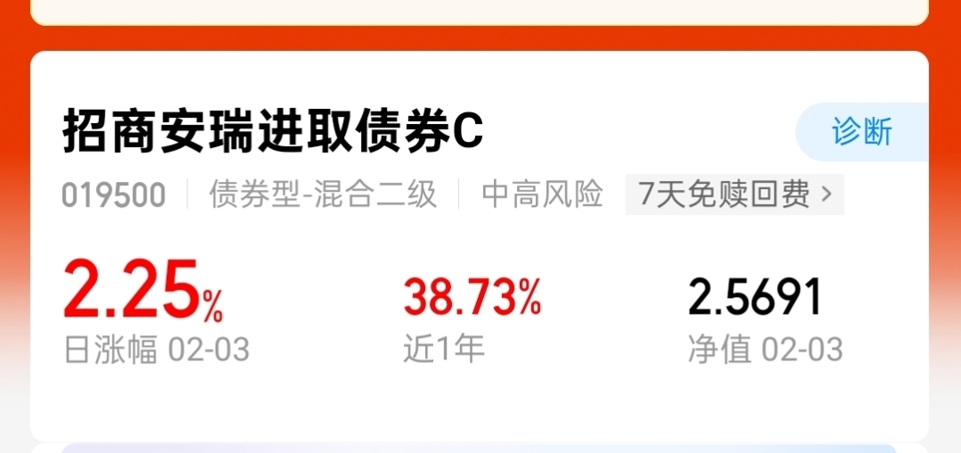 招商安瑞进取债券C,周二收蛋225个,太哇塞了!投资策略灵活多元,以债券打底提供稳健收益基础,同时适当配置股票、可转债等权益资产,从业绩表现看,长期收益较为可观,近一年涨近39%!