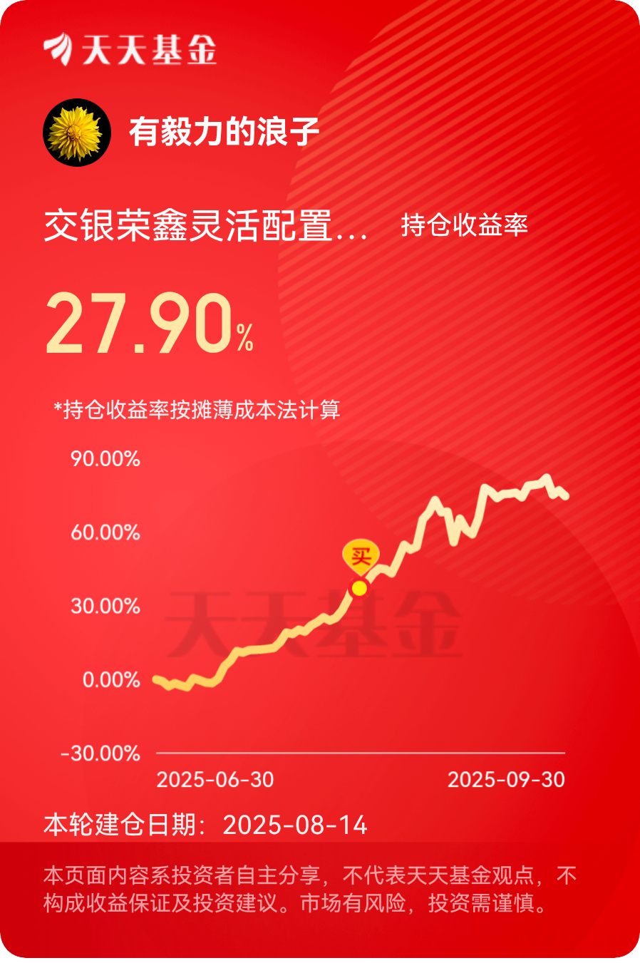 短期调整不影响中长期趋势,还得把握好加仓机会,这只表现不错$交银荣鑫灵活配置混合