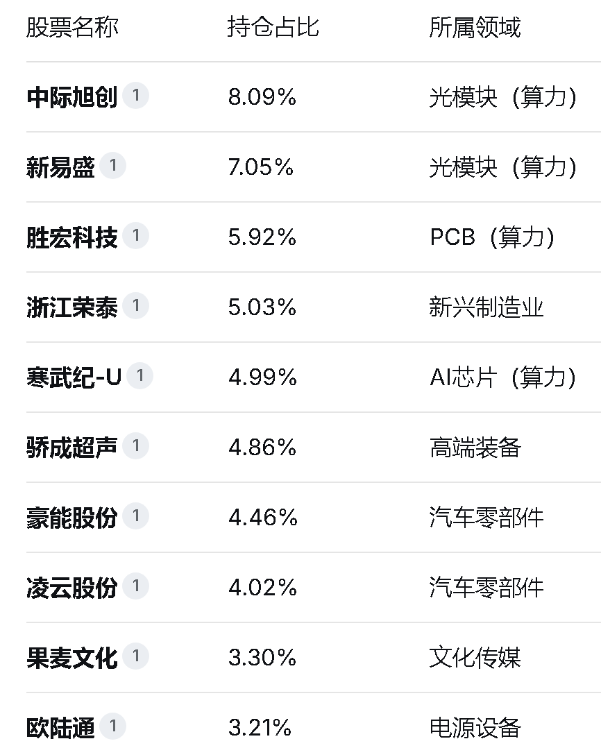 从十大重仓中可以看到,交银荣鑫投资了英伟达链的中际旭创等光模块公司,又投资了国产化算力芯片的寒武纪,能起到对冲作用:中美紧张则利好寒武纪,中美缓和则利好英伟达链。