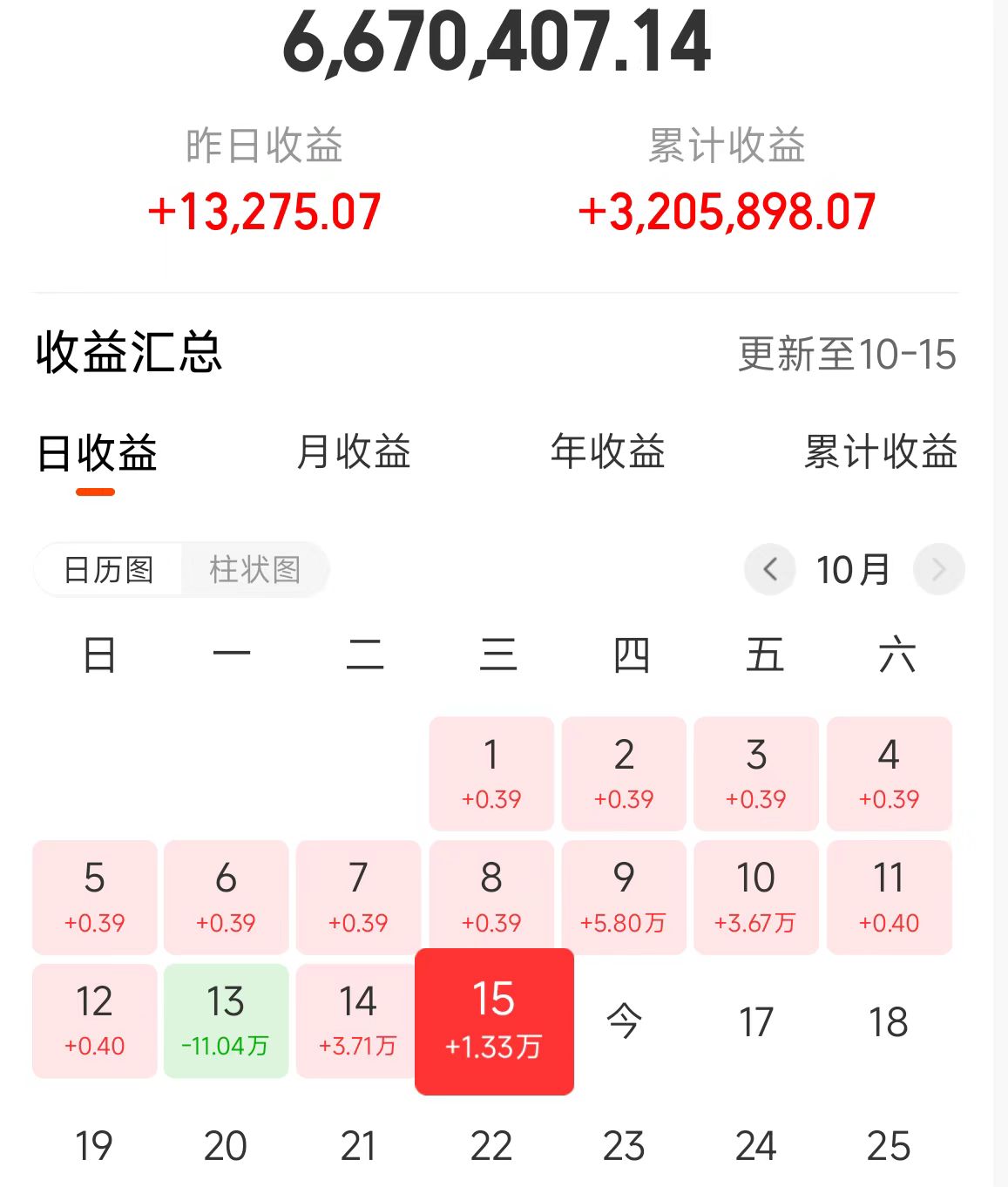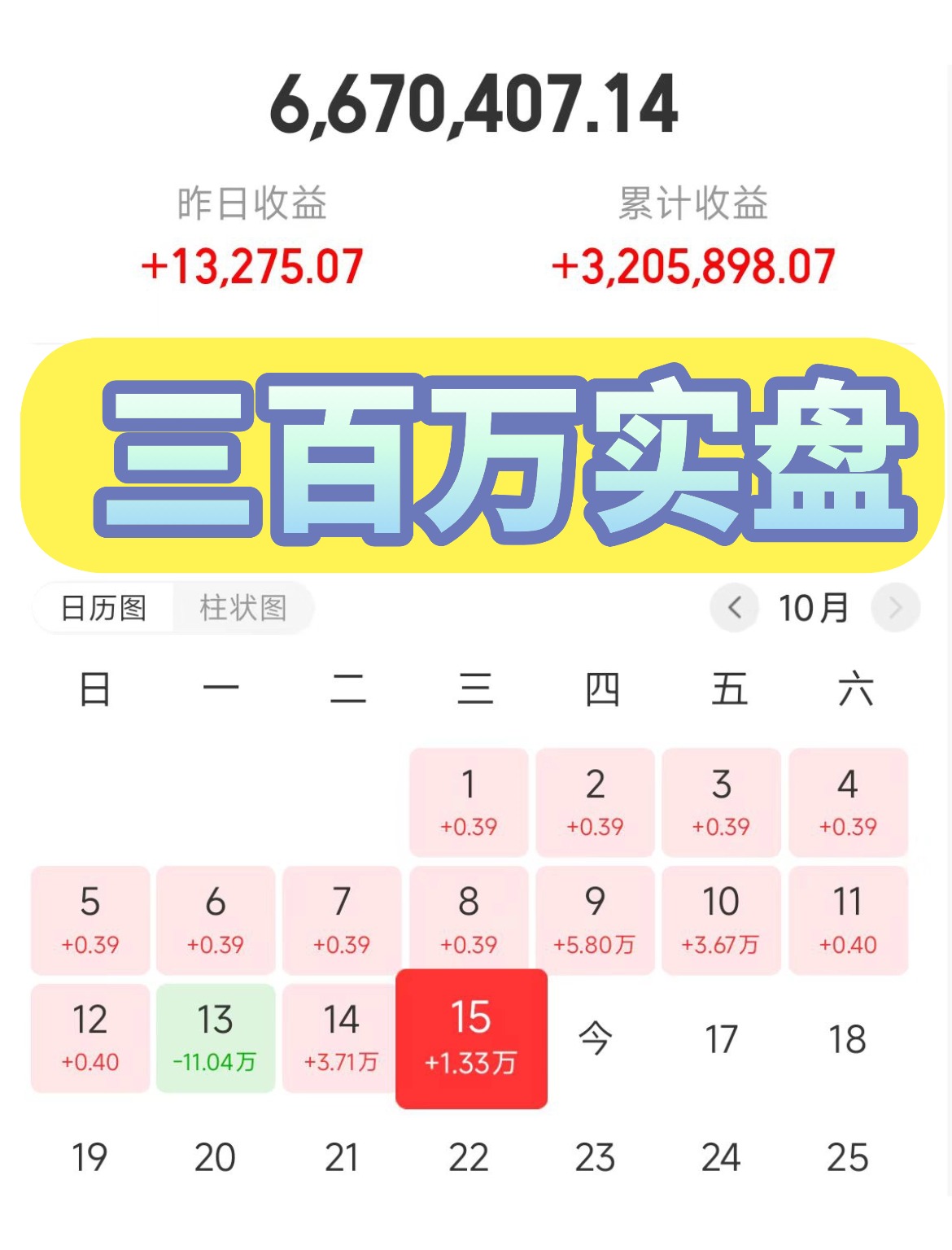 10月以来,账户14红1绿,300万实盘的收益320万。