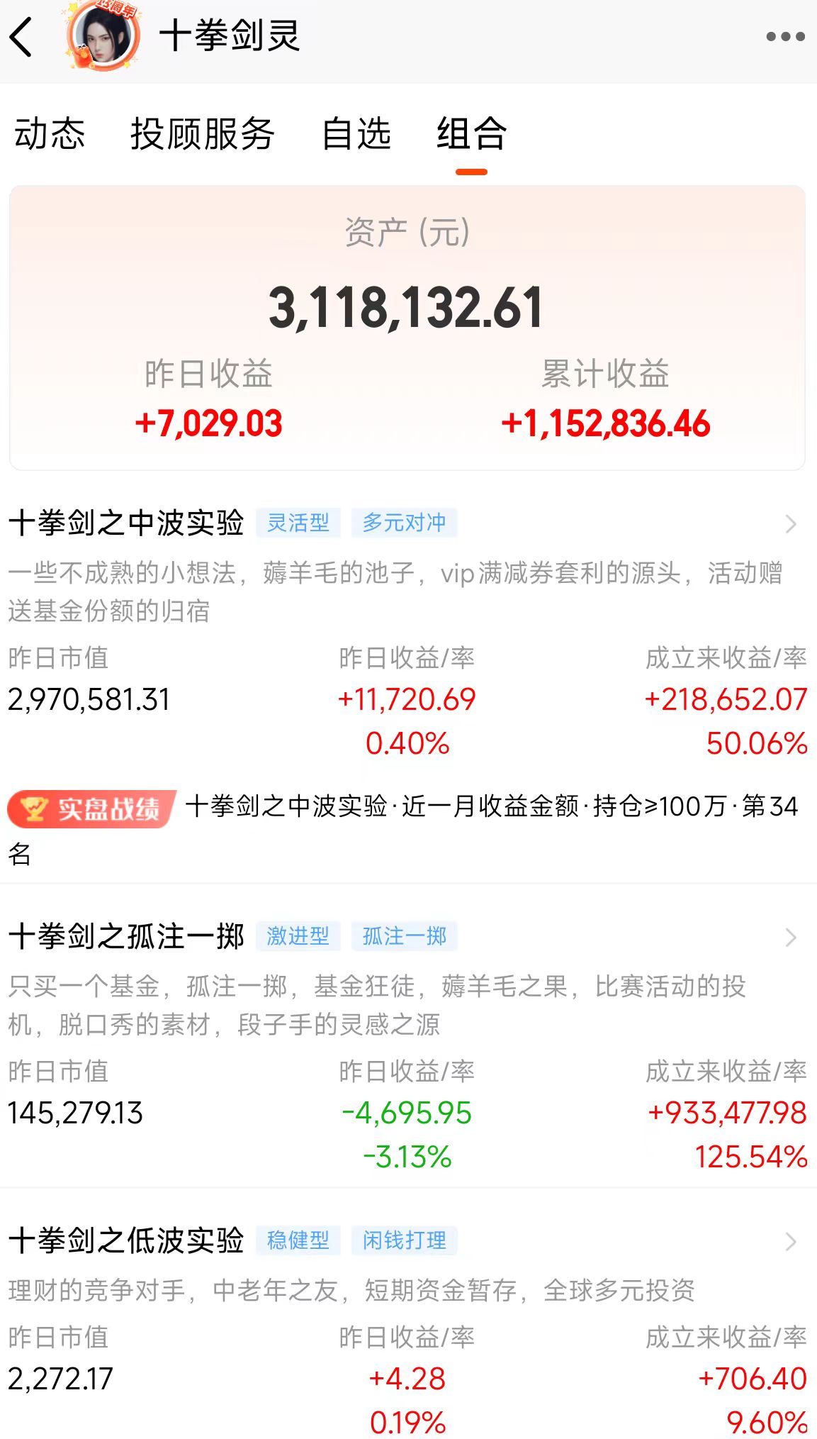 其实手动跟车和调仓都有点麻烦,所以也可以跟我一样,将部分资金买入投顾组合: