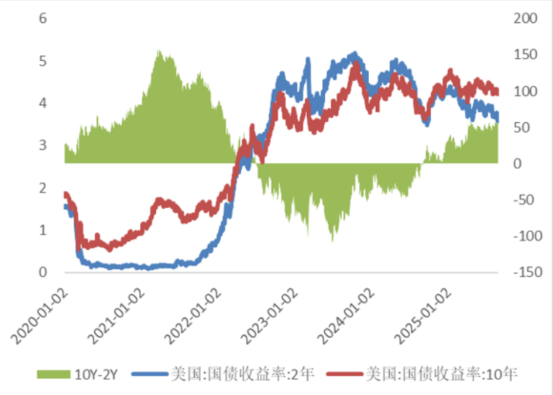 看股做债是当前国内债市的主线,背后反映的是居民资产配置再平衡的过程,那么风险偏好何时趋势回落是后续债市回归稳定的关键变量。权益市场自8月以来走出了估值持续拉升的上涨行情,背后反映的是市场预期的变化。简单回顾股市上涨的原因,首先离不开政策的支持,8月以来政策层不断落实反内卷、提振消费的举措提振了居民部门对于资本市场的预期,而其中最为关键的是政策层对股市的托底表态,相较于下跌更害怕错过的心态使得市场持股意愿普遍增强,其次是是中美双宽松预期下宏观流动性的改善,9月份联储降息以及国内存款利率的不断调降驱动全球资产风险偏好的改善,最后是以新消费、创新药、AI为代表的新的产业线索不断涌现,市场对于成长逻辑的追逐将相关板块的估值水平抬升到了极致的水平。因此总结看,这轮市场的上涨并非真正意义上的纯靠流动性抬升的行情,而是政策+流动性+产业趋势共振的牛市。