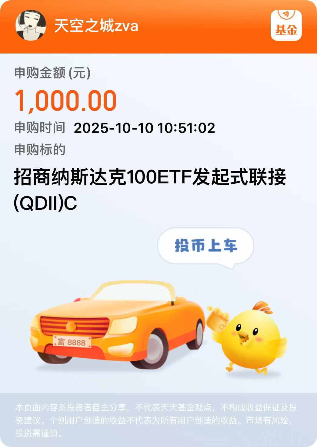 不少人长期定投美股,我也准备定投,不过想先加仓!今天先上车招商纳指,