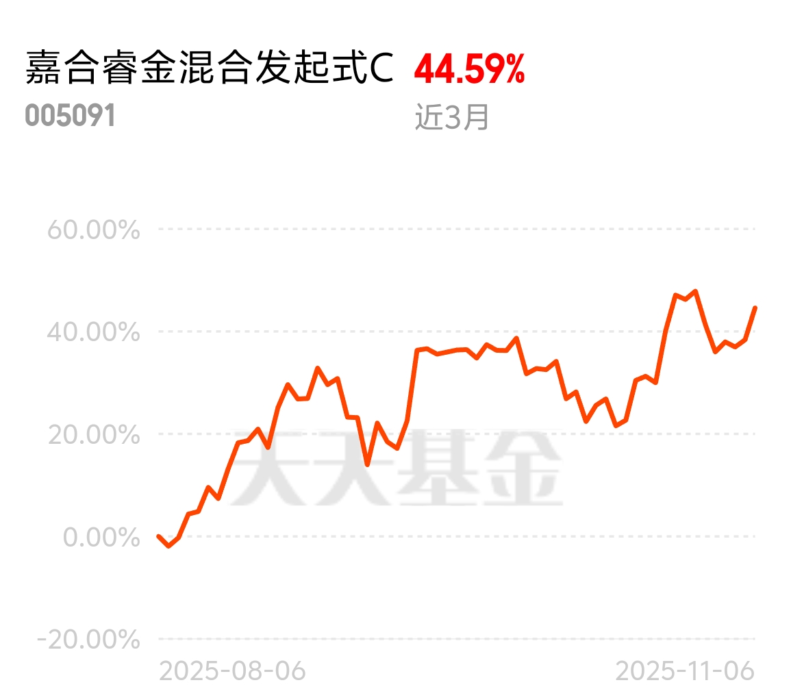 国内科技产业升级提速,CPO、存储芯片等细分领域爆发式增长,市场行情火热。嘉合睿金混合C敏锐捕捉趋势,近3个月斩获44.59%的优异成绩,让投资者轻松分享科技产业发展红利。