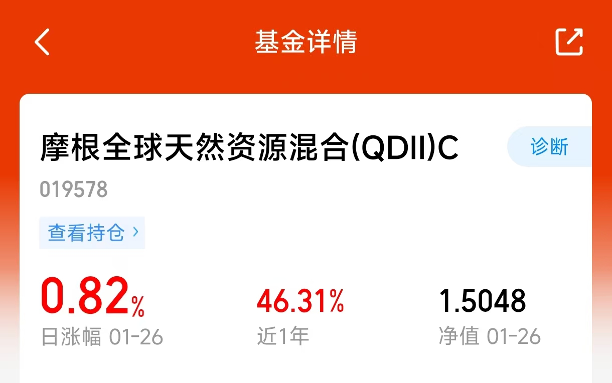 老铁们,最近外面不太平的消息一个接一个,这种时候投资更不能只盯着一处,得讲究个东边不亮西边亮。我今天就操作了一把,买了点$摩根全球天然资源混合(QDII)C$(019578)和$摩根全球新兴市场混合(QDII)$(378006)。数据说话,摩根全球天然资源今天预估涨1.36%,近一年收益接近46%;摩根新兴市场近一年也有37%的收益,两只基金近期势头都挺强,这种机会不抓住有点可惜。现在这种环境,那些硬资源比如黄金、石油、矿产什么的,价格支撑逻辑比较清晰,摩根全球天然资源这个基金就是全球范围投资这类资源巨头,覆盖能源、基本金属、贵金属等领域。摩根新兴市场则主打新兴市场,投资像台股、韩股、港股、巴西这些有活力的市场,它的行业分布比较多元,金融24%、信息技术22%、电信服务14%、非必需消费11%、工业7%,这种配置思路是基于不同新兴市场各有其产业优势,比如有的市场科技实力强,有的资源禀赋好,有的内需市场大,基金通过投资各地区的优势产业,实现风险的分散和增长机会的捕捉。全球范围内,资源品价格走强,摩根全球天然资源布局的资产直接受益;新兴市场方面,台股、韩股等市场近期也有不错表现,摩根新兴市场值得关注。额度方面是关键,摩根全球天然资源的额度已从10万降至1万,手慢无;摩根新兴市场目前还有10万额度,但QDII额度历来紧张,之前很多产品都快速限购,这10万额度可能随时调整,有全球资产配置需求的朋友,真的要多留意,及时行动。#继续新高!金价突破5200美元大关#