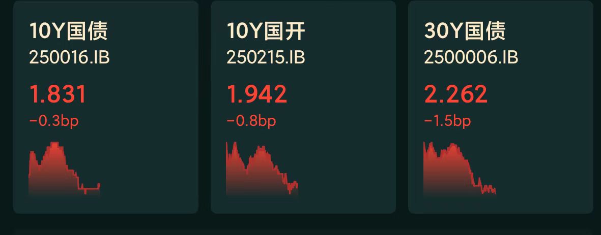 午后行情出现关键变化——权益市场多只宽基ETF显著放量,带动权益指数接力上行;与此同时,银行间主要利率债超长端品种延续领涨,大概率是前期的补涨行情。这里咱得理性看待,目前还不能判定是反转信号,姚姚个人倾向于短期反弹性质,趋势性行情出现的概率并不大。