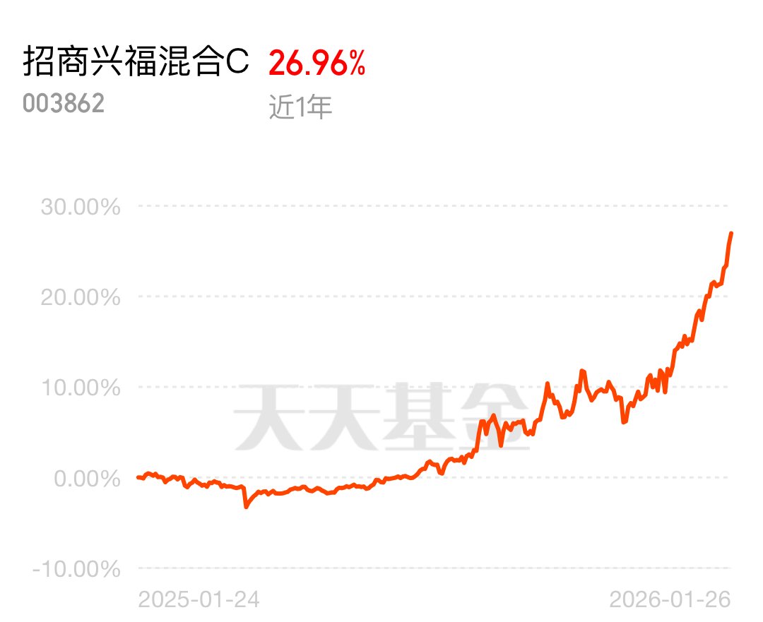 震荡市选基思路变一变,昨天权益普跌偏债混大涨 1%,招商兴福混合 C 重仓有色,近一周 4.46%,近 1 年 26.96%,抗跌又有收益爆发力。$招商兴福混合C$