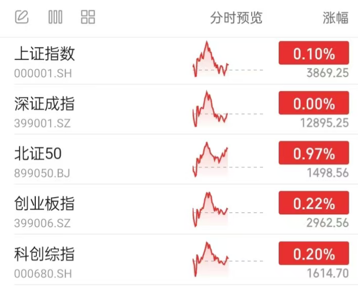 A股行情:截至中午,全市场各主流宽基指数均小幅反弹。