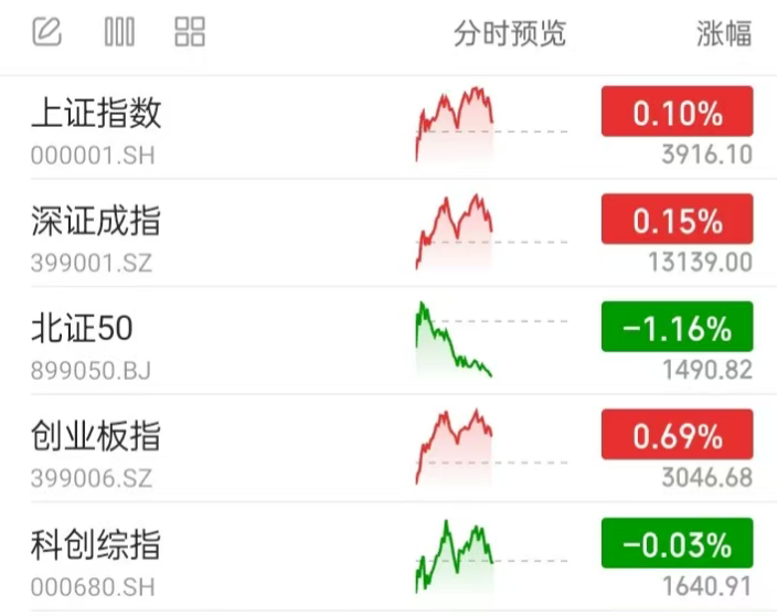 A股行情:截至中午,全市场各主流宽基指数涨跌不一。