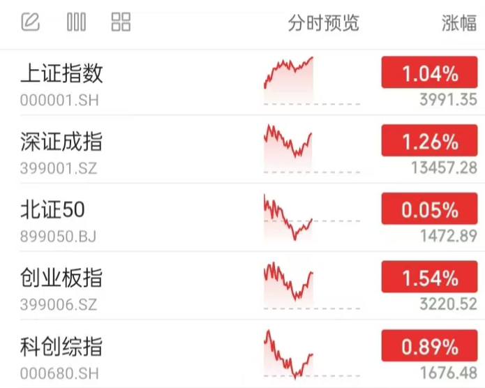 A股行情:截至中午,全市场各主流宽基指数全线上涨,其中上证指数逼近4000点大关。