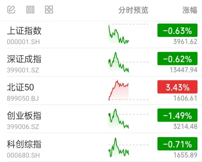 A股行情:截至中午,全市场各主流宽基指数多数调整。
