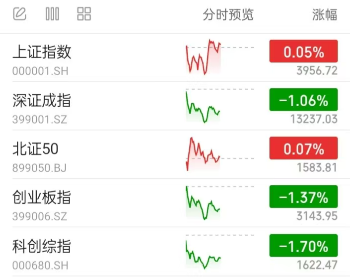 A股行情:截至中午,全市场各主流宽基指数多数回调。