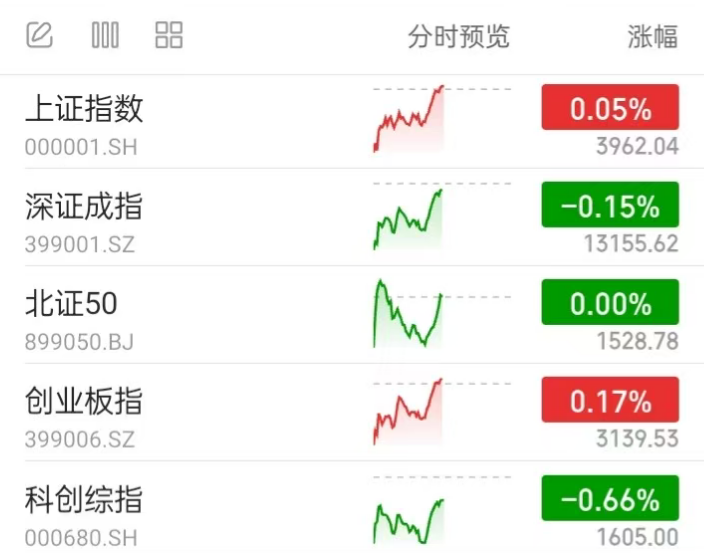 A股行情:截至中午,全市场各主流宽基指数多数上涨。
