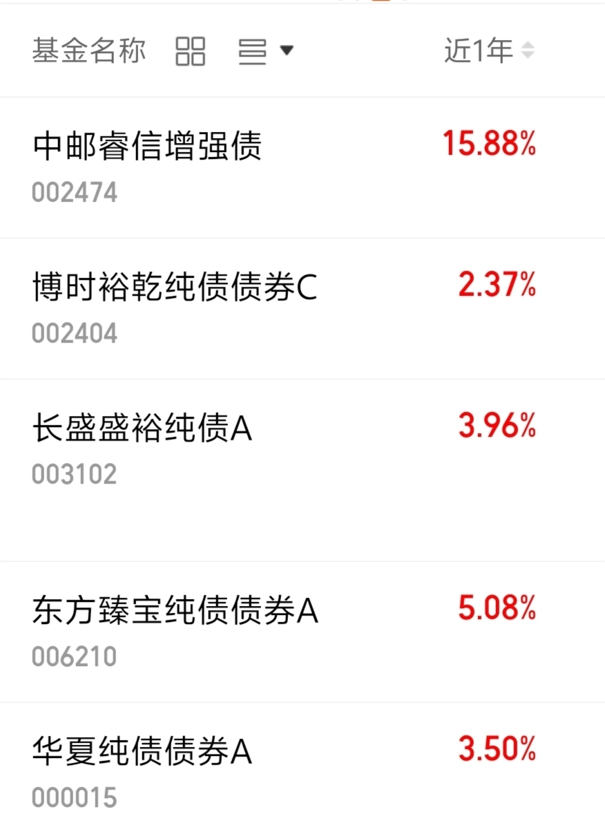 还是蛮看好混债的,$中邮睿信增强债$收益给力,年回报率15个点。而且主投信用债+