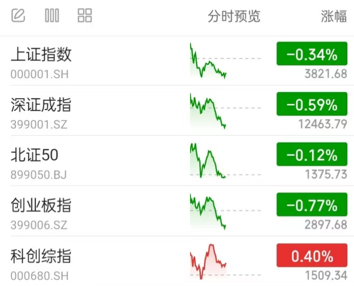 A股行情:截至中午,全市场各主流宽基指数多数调整,其中科创综指逆势上涨。