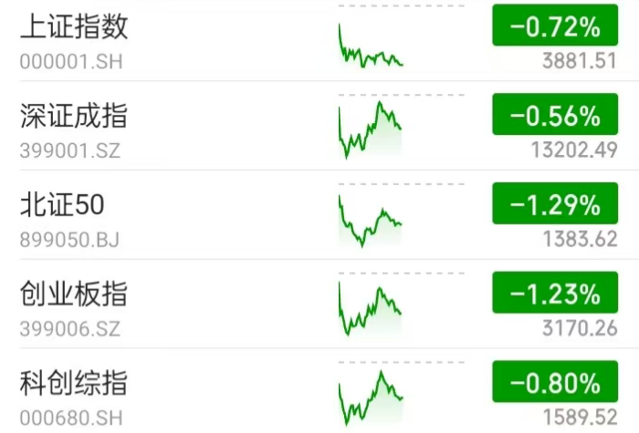 A股行情:截至中午,全市场各主流宽基指数全线调整。