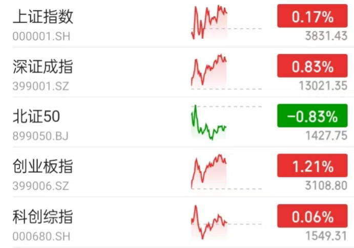 A股行情:截至中午,全市场各主流宽基指数多数反弹,其中创业板指涨幅超过1%。
