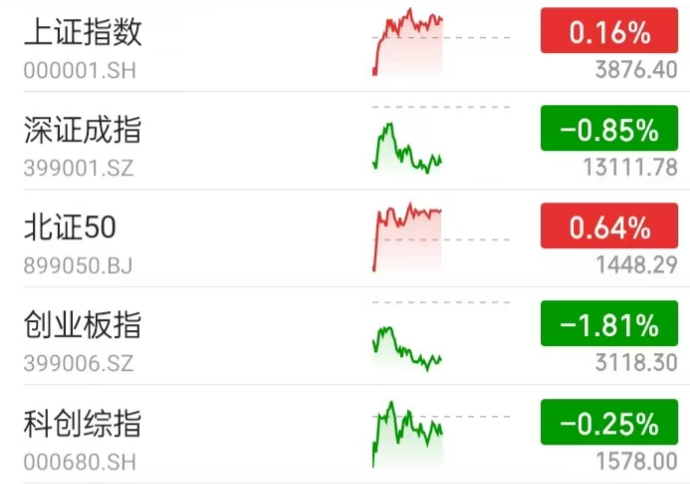 A股行情:截至中午,全市场各主流宽基指数涨跌不一,其中沪指收红,创业板指跌幅超1%。